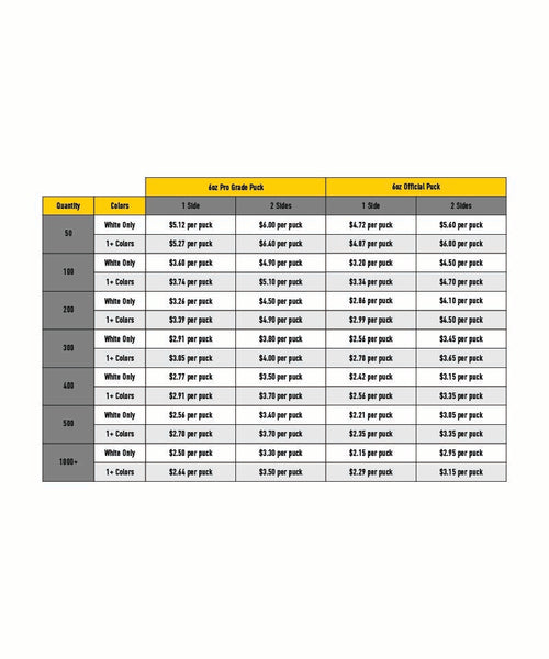 Howies hand wipes each puck with a special solution to increase adhesion before applying our durable ink. However, despite our industry-leading printing method, ice surfaces are very abrasive, and logo wear is inevitable. We produce the highest quality custom logo pucks on the market, but we still cannot guarantee the logo once the puck is used on game ice.